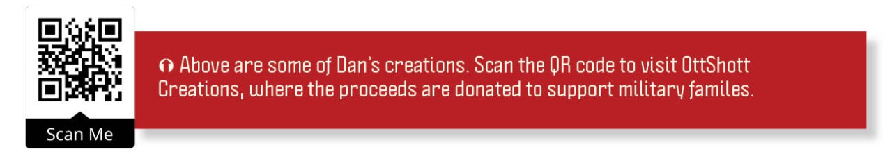So even though he’s not on a bike anymore, Dan still has a way to support military families with the proceeds from OttShott Creations, his own small business out of his home.